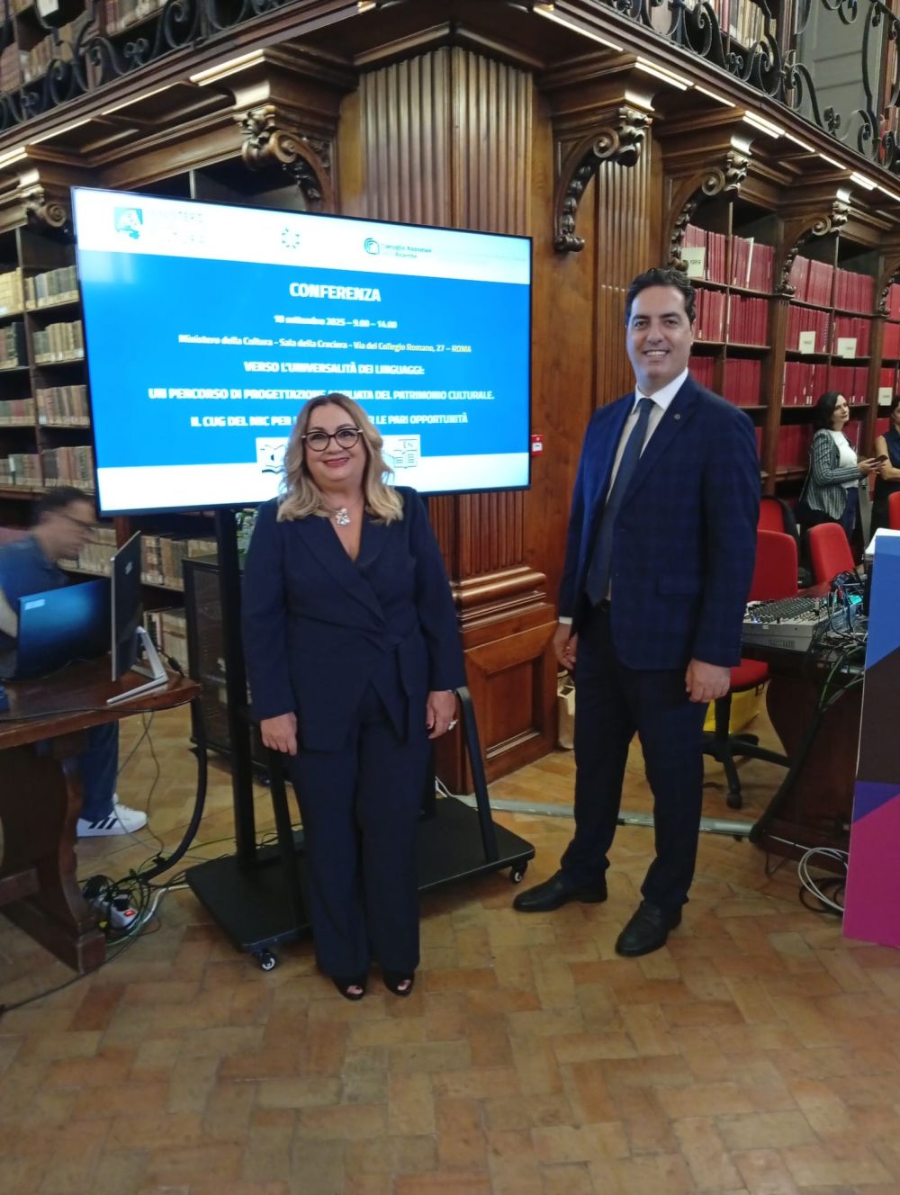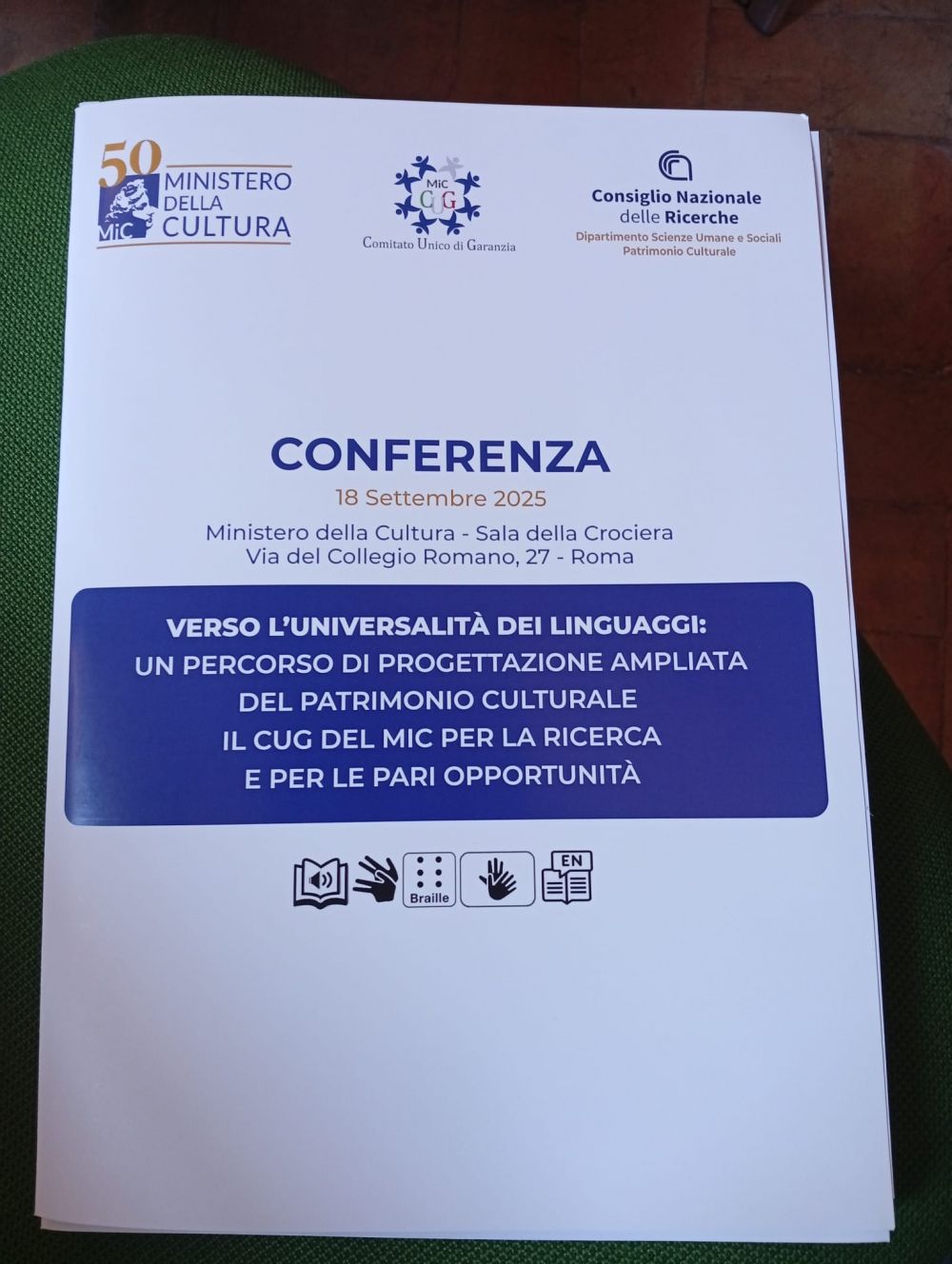 Il 18 settembre 2025 presso il Ministero della Cultura, nella prestigiosa cornice della Sala della Crociera nel Palazzo del Collegio Romano, si è tenuta la conferenza “Verso l’universalità dei linguaggi: un percorso di progettazione ampliata del patrimonio culturale. Il CUG del MIC per la ricerca e per le pari opportunità”.